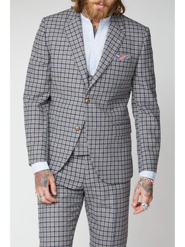 Gibson London Grey, Navy and Brown Check 3 Piece Suit – £320