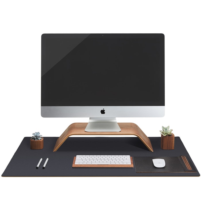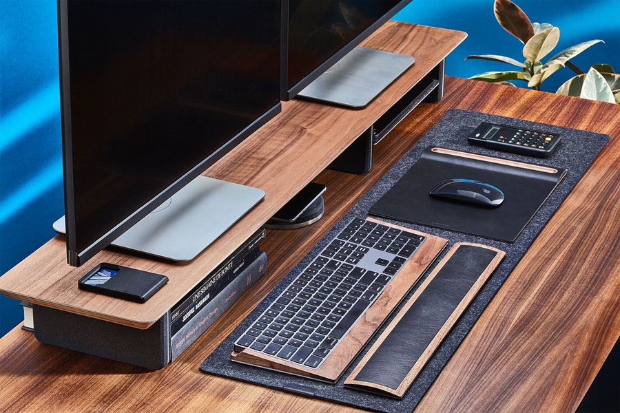 If you want to put your iMac or PC on a pedestal but don’t want to detract from the flow of your workspace and, in fact, add to its aesthetic appeal, this Grovemade Walnut Desk Shelf ($200) will be tough to beat. It delivers an ergonomic lift and abundant space which will be more than enough for up to two screens. It’s crafted to last a lifetime and is suited to almost any contemporary work configuration. It offers you subtle organisation for your workspace. Grovemade have crafted it from 15-ply premium walnut plywood, aluminium and natural cork which has been hand stained with Japanese calligraphy ink. A great looking accessory that will elevate the visual impact of your workspace considerably. ($200)