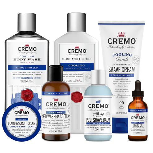 From an impossibly smooth shave cream all the way to refreshing beard styling, this bundle has everything the modern discerning gentleman needs. Cremo’s Citrus & Mint Leaf fragrance is a brisk scent with the skin-tingling qualities of peppermint oil to cool skin as you wash. Designed with a forward-thinking combination of citrus, mint, and added cooling ingredients.
