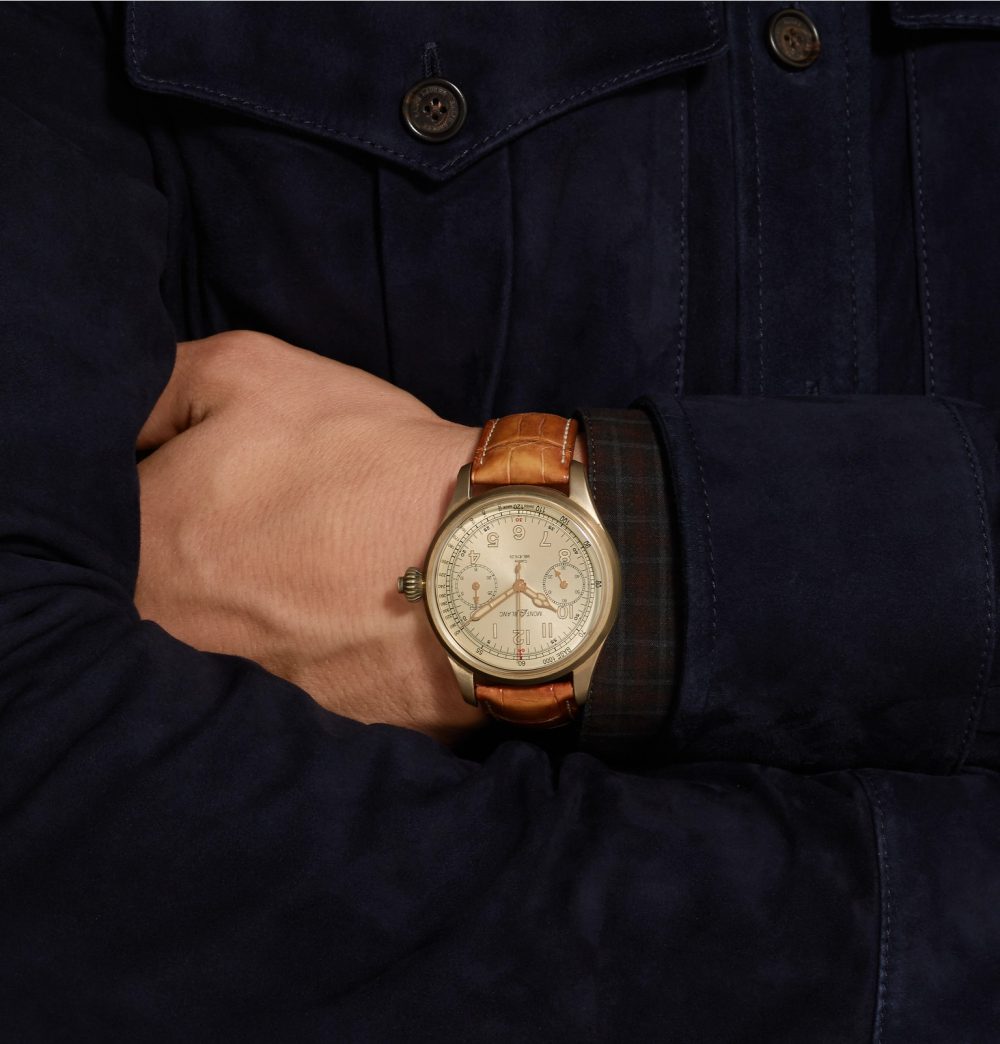 Manufactured in a limited run of only 100 pieces, this fantastic timepiece is part of Montblanc’s ‘1858’ collection that reinterprets the revered Minerva chronographs the came to market in the 1930s. The vintage-style bronze case is a first for the brand, and it is home to a champagne dial with a sunray finish and incredibly eye-catching, historical ‘cathedral’ hands – the decorative cloisonné design on the two markers is filled with Super-LumiNova® for that makes it extremely readable in all conditions. This stunning limited edition watch is powered by an incredibly accurate calibre MB M16.29 movement, and it has been subjected to the ‘Laboratory Test 500’, a programme that simulates the first year’s lifecycle to guarantee reliability. (£23,600)