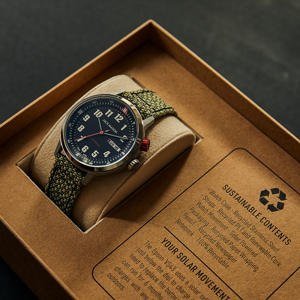 When it comes to field watches, the guys at Jack Mason are one of the best in the business and if you’re after an adventure ready and environmentally friendly timepiece for your wrist this summer, look no further than the Jack Mason Solar Field Watch ($375). This first class watch has been sustainably crafted but boasts a mighty stylish design that we’re loving here at Coolector HQ and the solar-powered battery doesn’t need to be replaced and can retain 6 months of use on a single charge from either indoor or outdoor light. Each watch comes with a Rite in the Rain weatherproof, 100% recycled notebook and two pencils made from recycled newspaper. The watch has a water resistance of 100m and the two straps included are made from renewable resources: Recycled PET plastics and renewable cork. ($375)