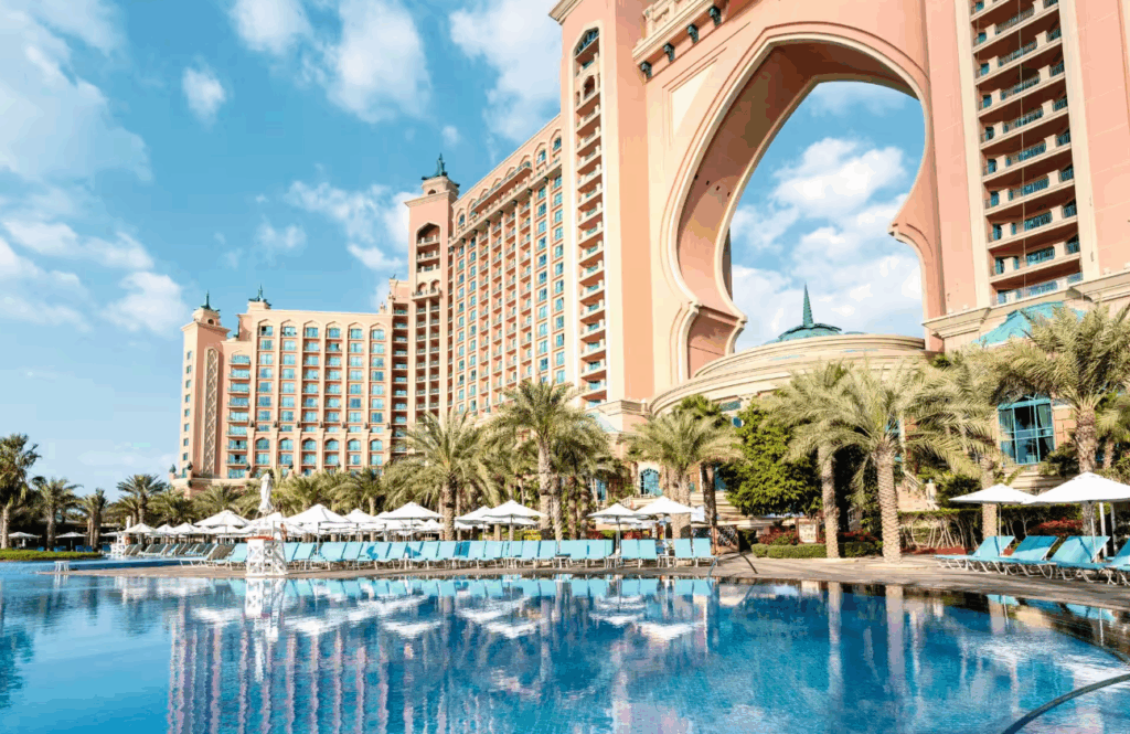 With its towering turrets, opulent marble interiors, and stately archways, the Fairmont The Palm transcends the typical hotel experience, resembling a grand Arabian palace. It also boasts some of the most spectacular panoramic views in Dubai. Guests enjoy direct access to a private stretch of white sand, offering sweeping vistas of the city’s impressive skyscrapers. For those looking to explore, Dubai Marina is just a 10-minute drive away, while the expansive Dubai Mall can be reached in under half an hour. Luxury is the defining characteristic here, with a range of gourmet dining options, an award-winning spa, and pools that provide stunning city views. Additionally, a comprehensive list of watersports, from waterskiing to banana-boating, ensures there’s no shortage of beachfront excitement.