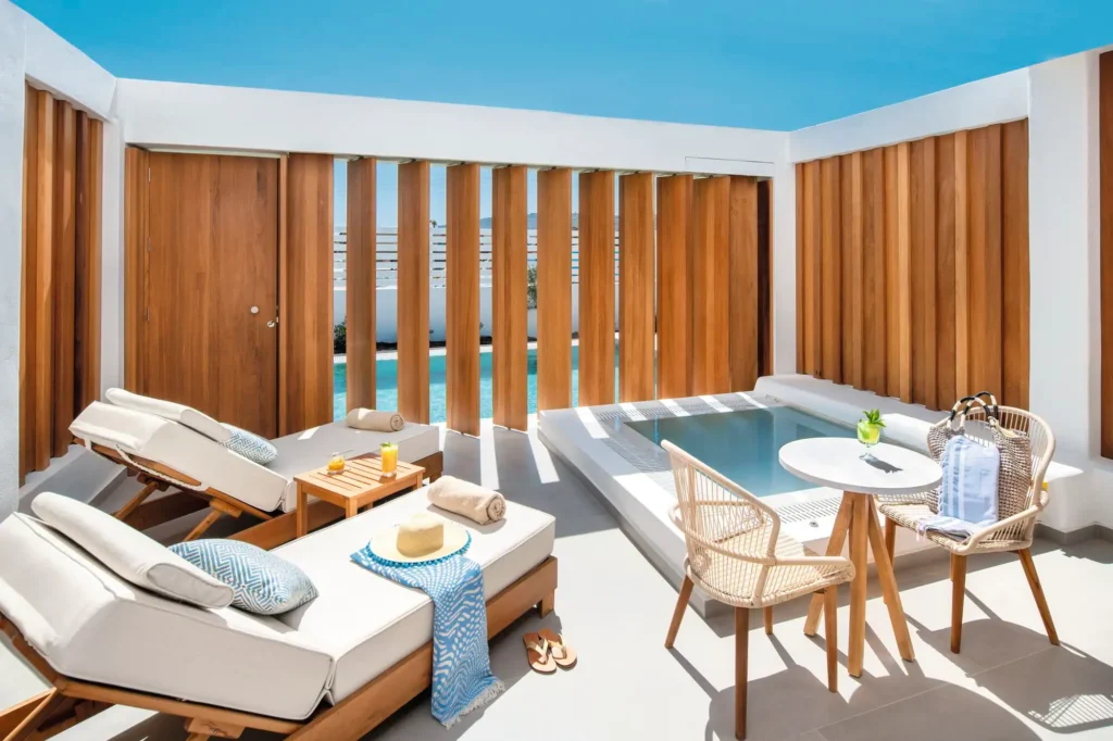 For a dose of Cycladic chic, we’re off to Santorini and the TUI BLUE Meltemi. This five-star, adults-only spot takes the iconic Santorini experience and elevates it with rooms boasting private pools. We’re talking deluxe double rooms with a terrace and your very own secluded swimming spot, complete with a privacy screen for ultimate chill time. If you can drag yourself away from your watery sanctuary, there’s also an extensive fitness programme and a spa to indulge in. Sounds like the perfect blend of relaxation and indulgence.
