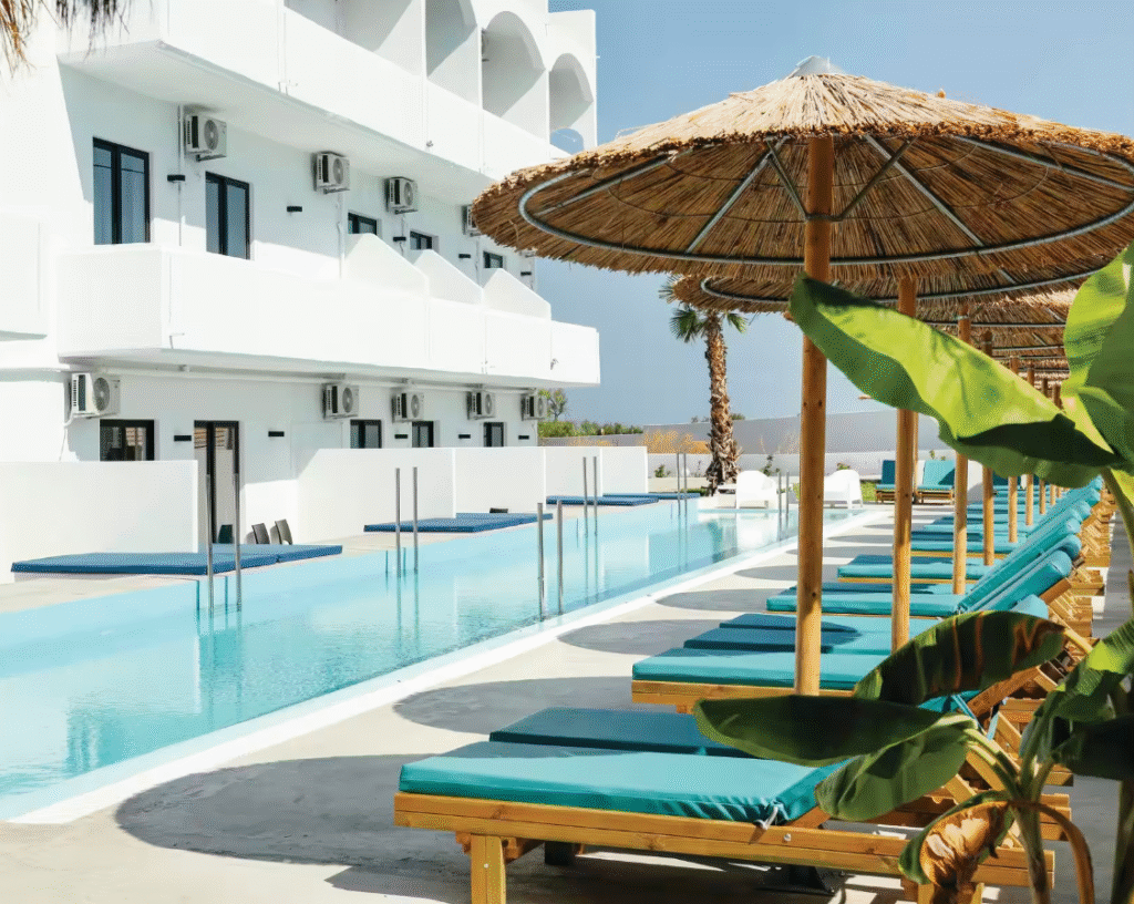 Water babies can splash around to their heart’s content at this hotel, which is part of the TUI BLUE collection. The pool here is a massive mushroom-shaped number that edges up to the shoreline, and it neighbours a pergola-shaded bar that looks out to the sea. So, you can watch the sun dip below the horizon with a cocktail in hand in the evenings.