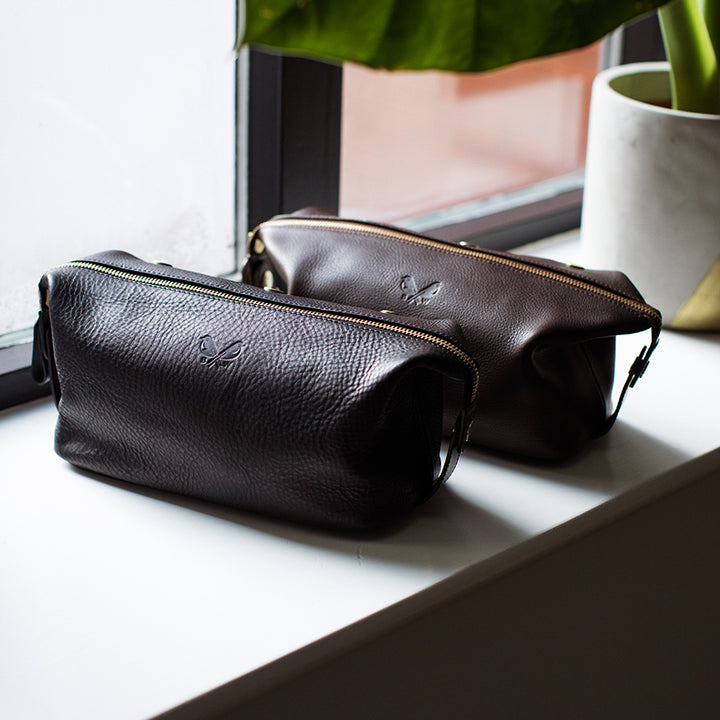 With an array of impressive design features, the Bennett Winch leather wash bag delivers the brand’s unparalleled attention to detail to a travel essential. Lined in water proof Italian nylon, this made in England wash bag has an internal clip out wet compartment – ideal for razors and beard clippers. An internal pocket gives you a secure space for smaller tools, whilst the wide mouth opening of this dopp kit offers easy access to all your toiletries.