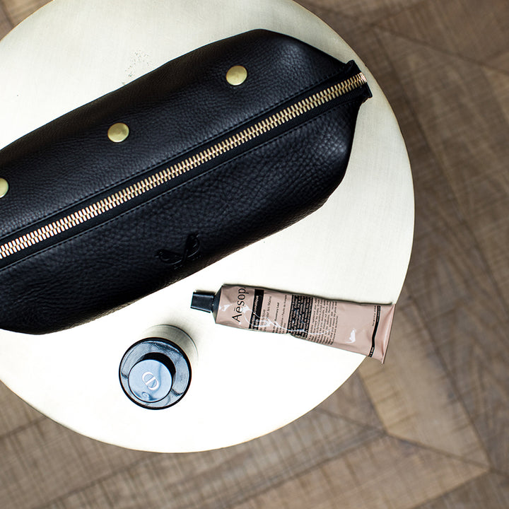 LEATHER WASH BAG IN BLACK | £395