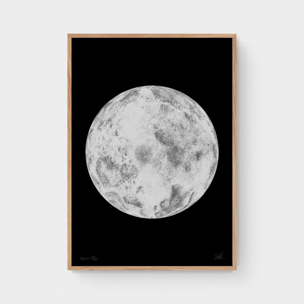 Not the moon from Stellavie is actually a pancake, digitised as a high-res, film-quality scan — its texture is applied to a true-to-scale sphere representation and virtually photographed with a telescopic lens. Each variant is available as a limited edition of 100 prints, signed, numbered and coded in reference to how minor planets are formally designated.