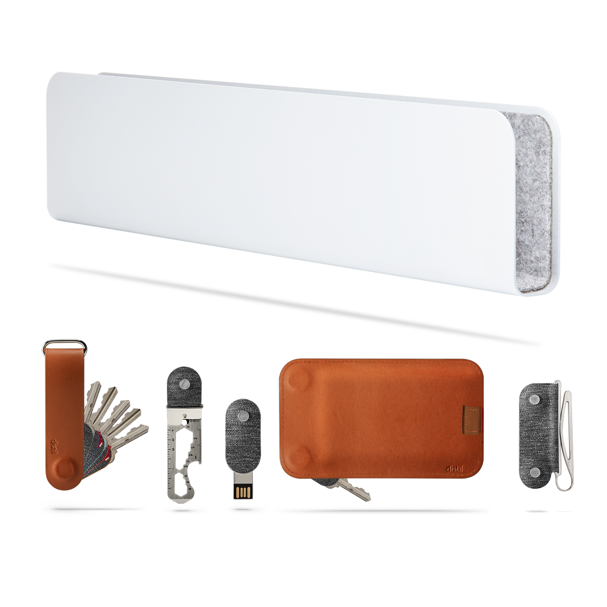 The Ferris System has been designed to help you get organized (and stop losing things) with life-simplifying EDC gear that comes together in a snap and mounts to any magnetic surface. Distil’s expandable and collapsable system is powered by MagLock modules that let you add, remove and reorganize – no tools required. The Full Ferris Bundle includes everything you need to optimize your out-the-door routine, including the ModStation magnetic wall shelf with charging-cable pass-through. Mount a ModStation wherever clutter seems to creep up, and keep your everyday-carry items in one place.