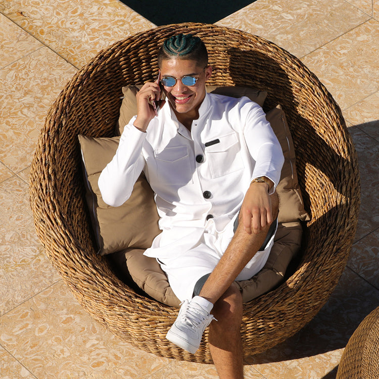 The luxurious LEORÊVER Roma Jacket is a vintage 1940’s field coat with an Italian collar that can be flipped up or down.  With it’s masculine cut and breathable micro modal stretch fabric, it has unique aesthetic but feels comfortable and familiar like one of the brand’s 8th Avenue Track Suit pieces. Micro Modal is made from the cellulose of Beech trees. It is odorless, breathable, and environmentally friendly.  The Roma series represents Jonathan’s fusing of traditional fashion with current textile technology put together for the modern man.