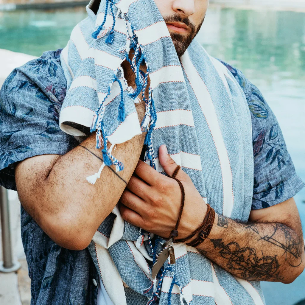 The Everyman exclusive peshtemals are handmade from extra long fibre Turkish cotton known for its extremely soft and absorbent feel. The towels only get softer and more absorbent with each wash. Woven with a flat weave, these cotton threads produce a final product with a thin profile that remains decidedly absorbent. This simplified design makes peshtemals exceptionally easy to dry, reuse, and carry.