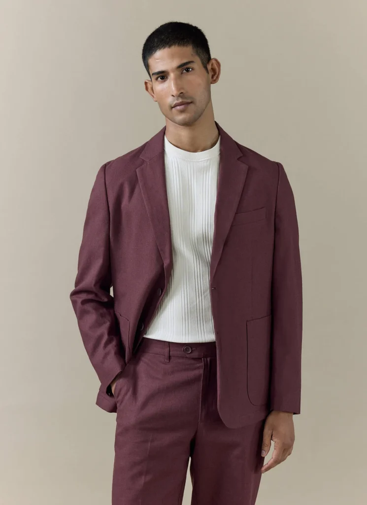 Introducing Merlot: A shade so rich it should probably come with a tasting note. Percival has taken their signature tailoring and decanted it into the season’s deepest hue. Warm‑weather tailoring, sorted. The Tailored Linen Blazer brings easy structure to spring weddings, office days and long lunches. Cut from a breathable linen–cotton blend with a two‑button front and roomy patch pockets; sharp when you need it, relaxed when you don’t.