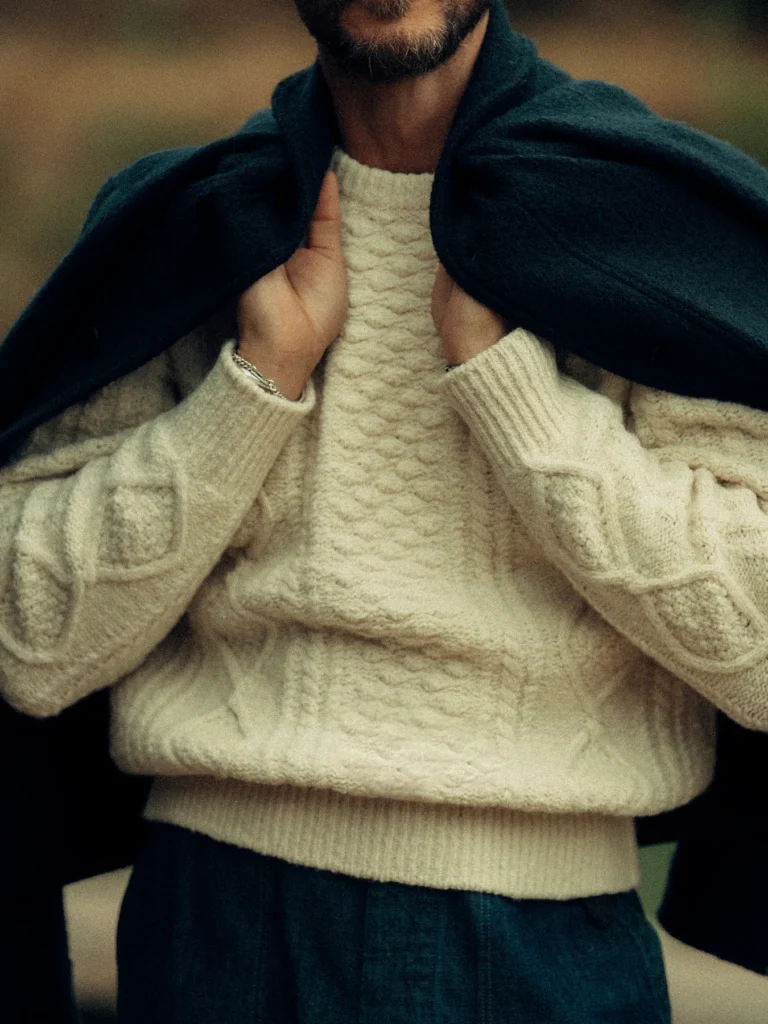 Seastack Wool Tweed Cable Crew