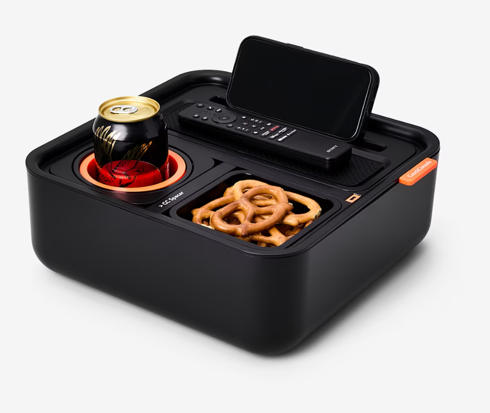 Unparalleled convenience at your fingertips. The CouchConsole has a cupholder, snack container, phone stand, charging plug, remote tray, storage area, and padded armrest in one compact, modular form. The self-balancing cup holder is made with an innovative gyroscope system that’s weighted to ensure your cup stays upright on soft and uneven surfaces.