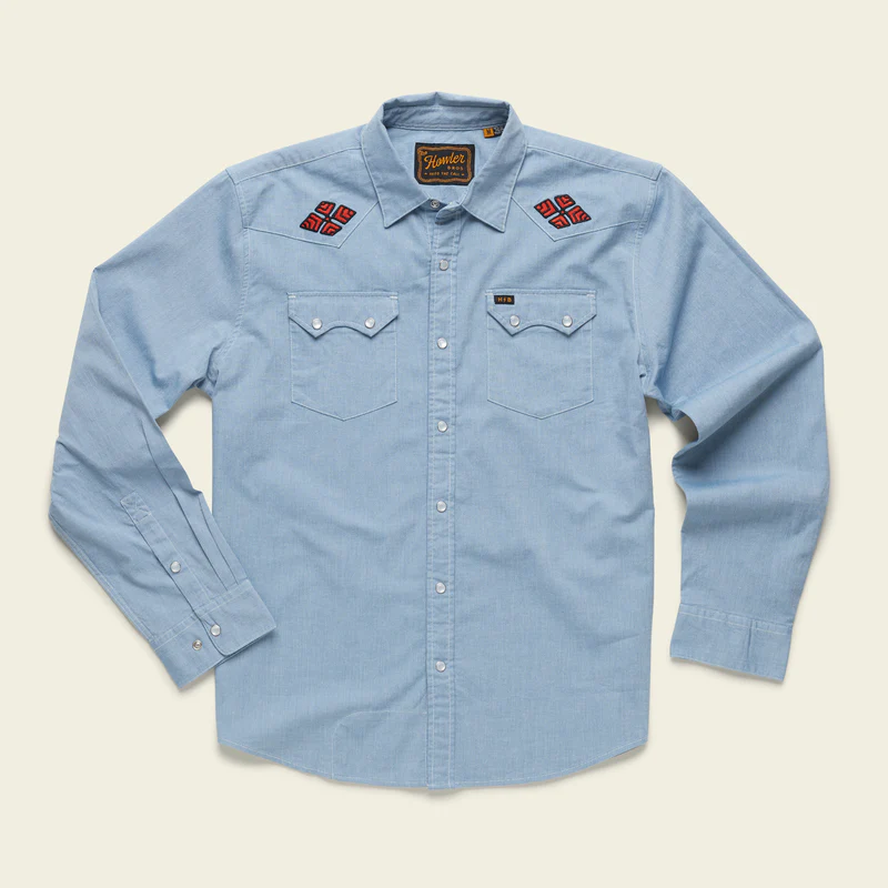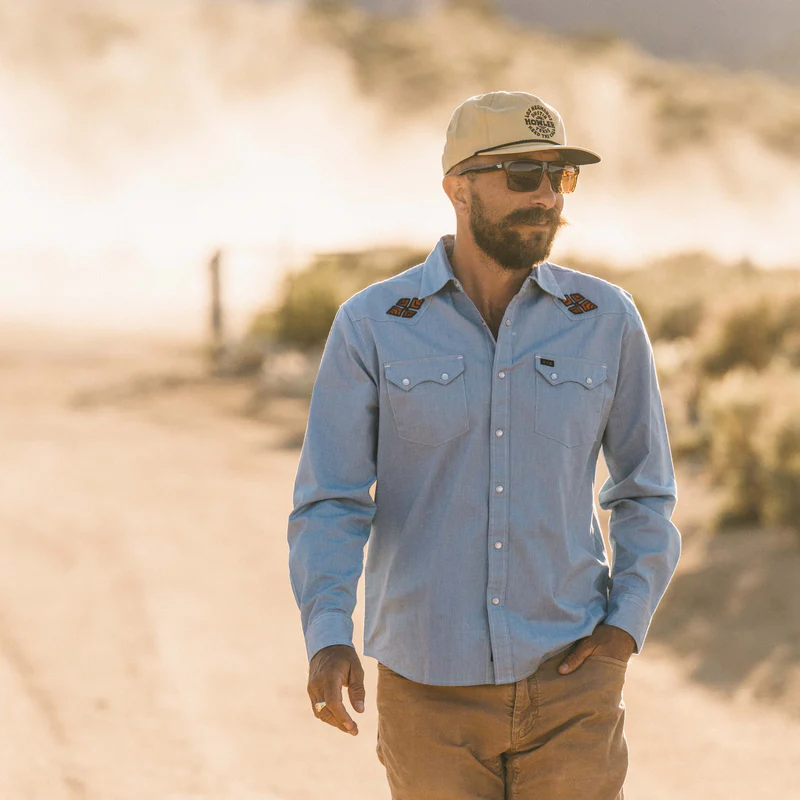 Howler Bros wanted to make the Gaucho Snapshirt desperately and, in fact, it is one of the reasons they started Howler Brothers in the first place. They wanted to transform the vintage western shirts of the past into something technical and wearable in everyday life while maintaining a little of their quirky nature and penchant for unique, embroidered artwork.