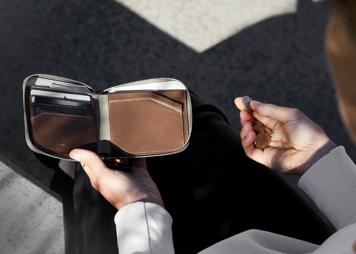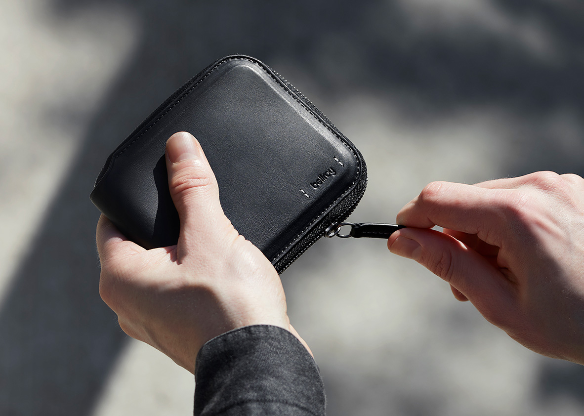 This functional and stylish little wallet from Bellroy unzips to reveal big flexible storage for cards, bills, coins and even a spare SIM. A high internal pocket stores coins securely and the zip prevents spills and it has space for 4 – 15+ cards.