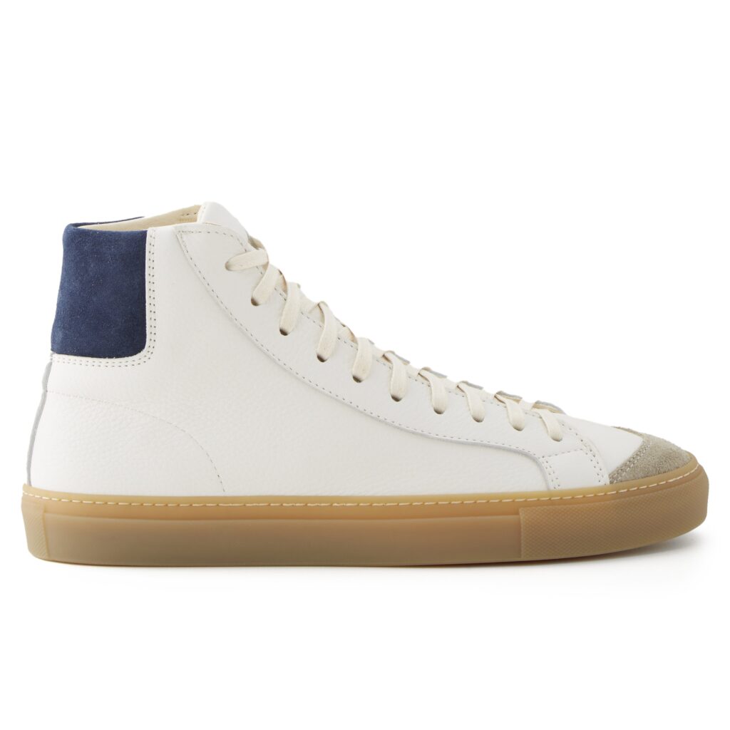 The James Hi Court Sneaker is a collaboration between Huckberry and Opie Way known for its high-quality, slow-made sneakers. This premium sneaker is a modern take on a classic silhouette. It is made with dry-milled leather uppers, waterproof suede accents, and an Italian rubber cupsole.