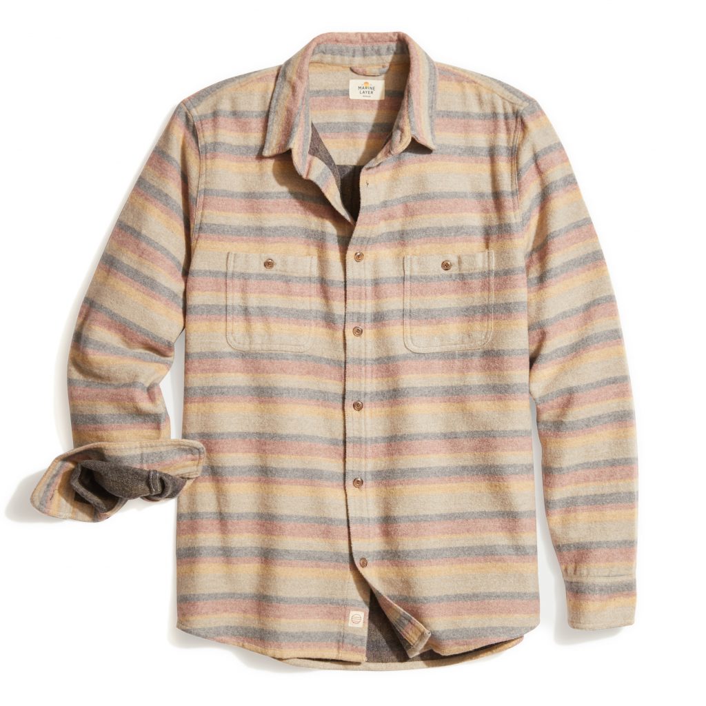 This classic heavyweight button down Marine Layer Vicente Overshirt ($155) comes with a brushed face for extra softness and a vintage look. Crafted from a blend of cotton and wool that has a good heft and resists pilling and it has two patch pockets at the chest. ($155)