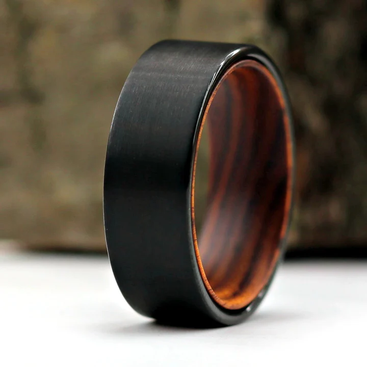 Desert Ironwood (aka American Ironwood) is one of the most appreciated timbers in traditional knife making, furniture making, and instrument building. Thorum has paired this timber with modern matte black tungsten carbide, for a wonderfully modern and understated wedding ring that oozes class.