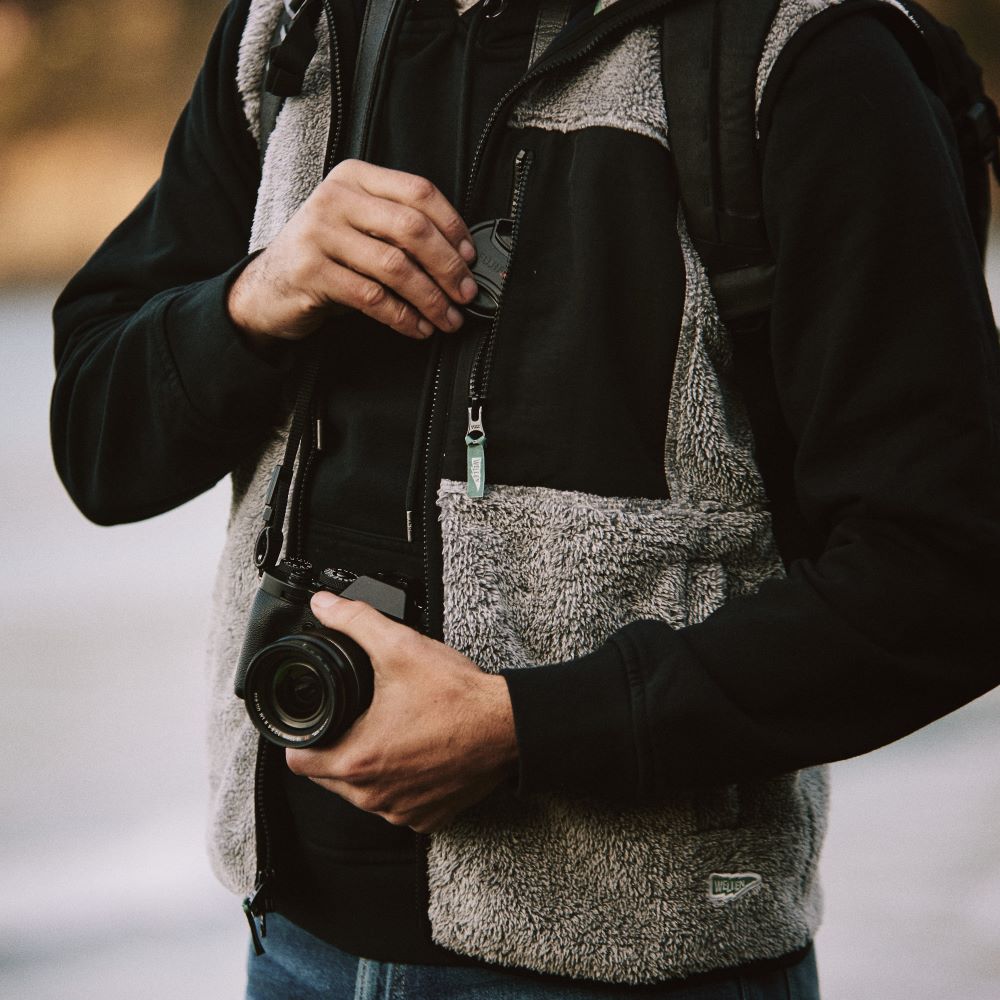 • Cut from a sustainable, recycled polyester fleece that’s both warm and soft