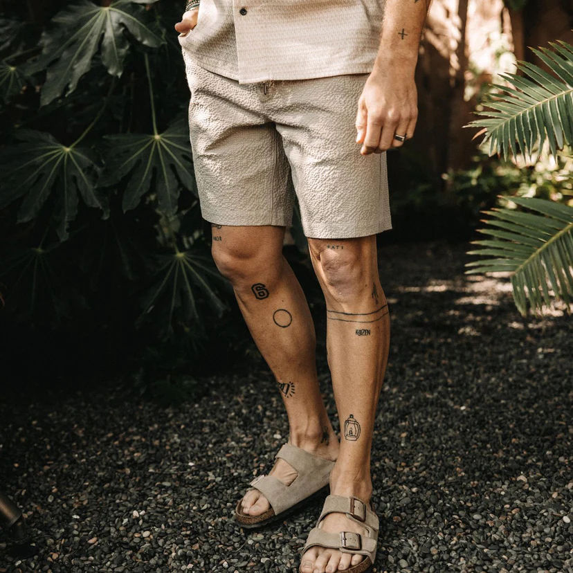 The Easy Short is the perfect pair of shorts for any occasion. They are comfortable, versatile, and durable. The sharp tailoring and richly textured crepe seersucker finish make them look great in any setting, whether you are at the office, on a hike, or at a barbecue. The hidden drawcord and elasticated rear waistband provide a comfortable fit that will keep you feeling relaxed all day long.