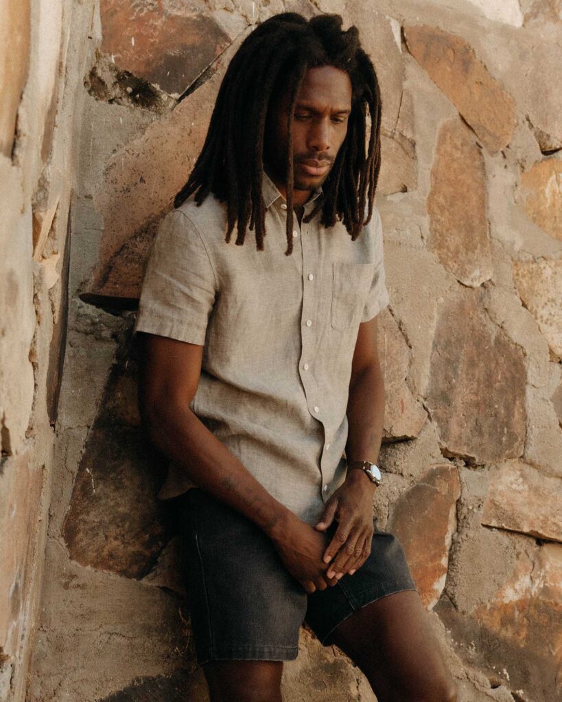 Designed in collaboration with Jimmy Thompson of Jim & Juice, The Davis Shirt features a custom Desert Palm print inspired by the wide-open horizons of California’s high desert. With its camp collar silhouette and breezy linen blend make, this one’s built to bring some standout character to your summer rotation.