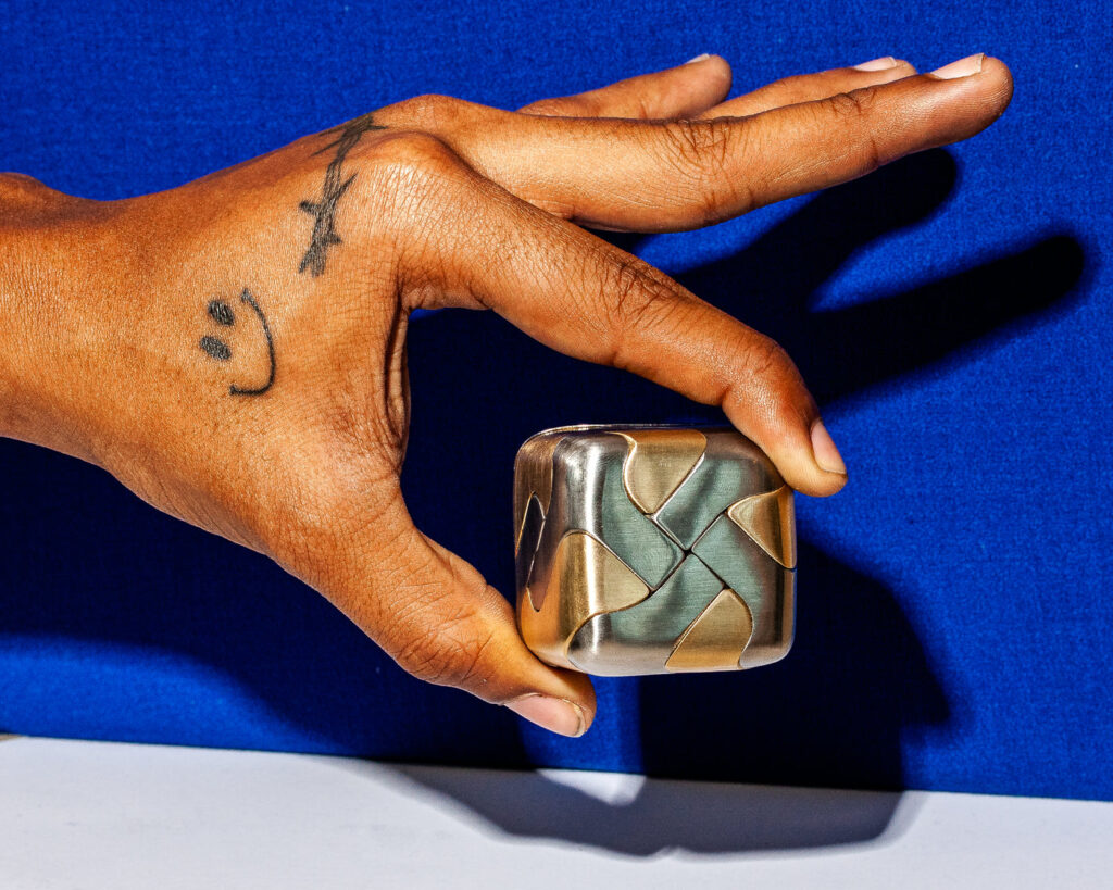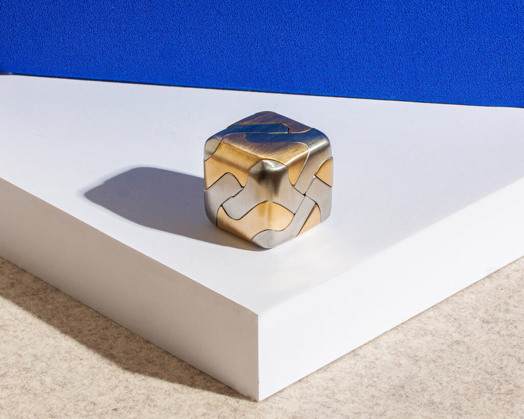 The Tycho Puzzle is an intriguing mental and physical challenge that will serve as a distraction when you need a break from your work load. It’s difficult to solve, satisfying to hold, and striking to display. Consisting of eight pieces of brass and stainless steel, the components fit together to form a cube with gently rounded edges. The Tycho Puzzle also boasts a hidden interior cavity that’s a perfect place to conceal a meaningful surprise. The solution to the puzzle might initially seem clear, but upon closer inspection there are nuances, asymmetries, and interferences that prevent a simple stacked approach.