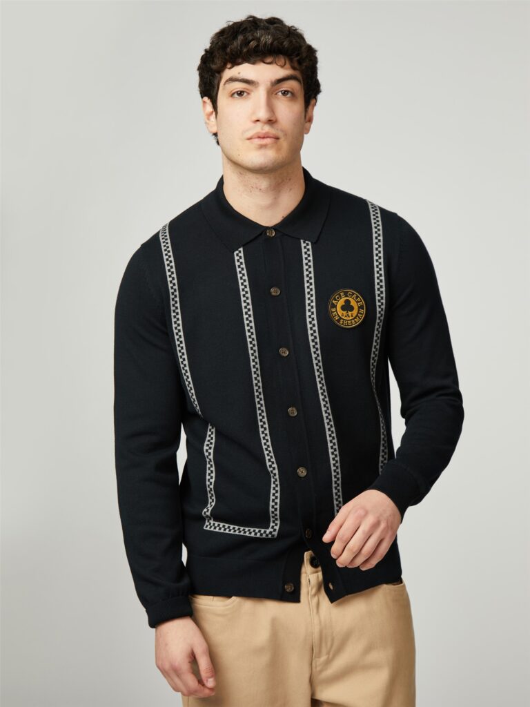 Made from 100% organic cotton, this knitted chequerboard button through polo features a Ace Cafe© x Ben Sherman branded badge on the left chest.