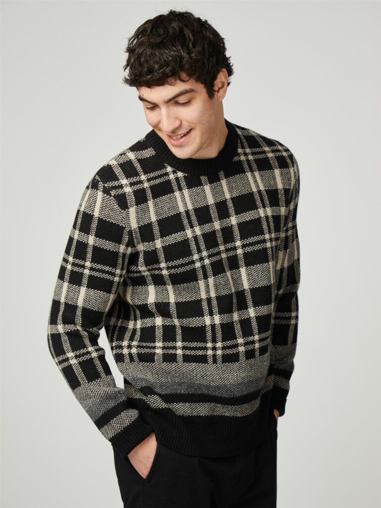 This knitted tartan jacquard crew features a Ben Sherman™ branded woven label at the side seam. A relaxed fit, made from a wool blend.