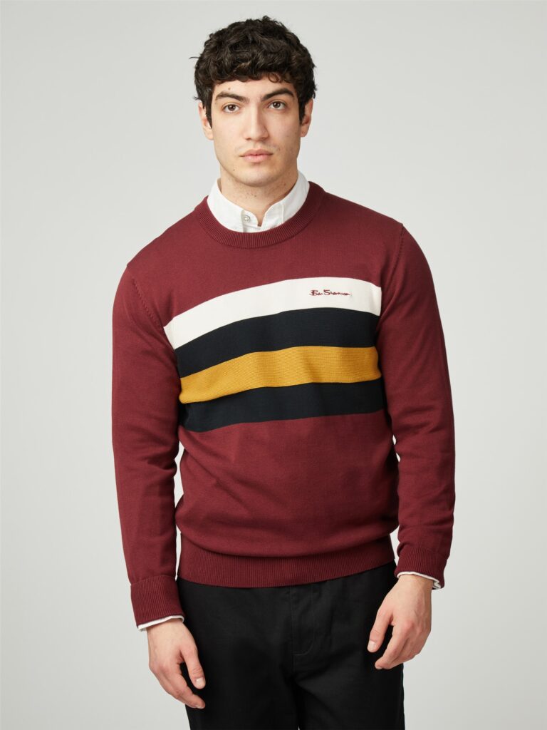 Made from 100% organic cotton, this knitted chest stripe crew features textured stripes and a Ben Sherman™ embroidery on the left chest.