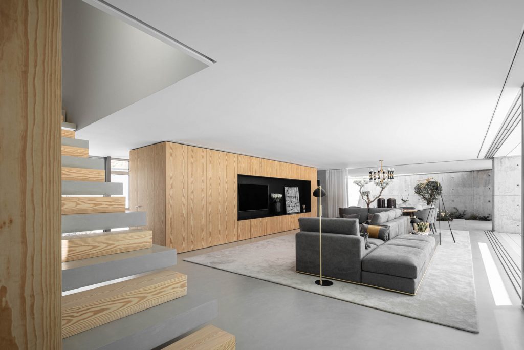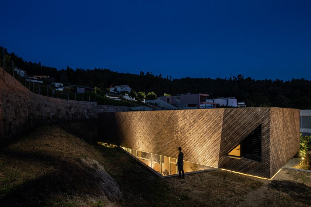 The REM’A Architects designed A House has a vast living space of some 450m2 and the property is sited in a typical peripheral region lot, in Guimarães city and it is characterised by a surrounding high density residential area. The project was developed according to the immediate needs of the owners – namely, to deliver privacy and make the most of the natural topography of the site.