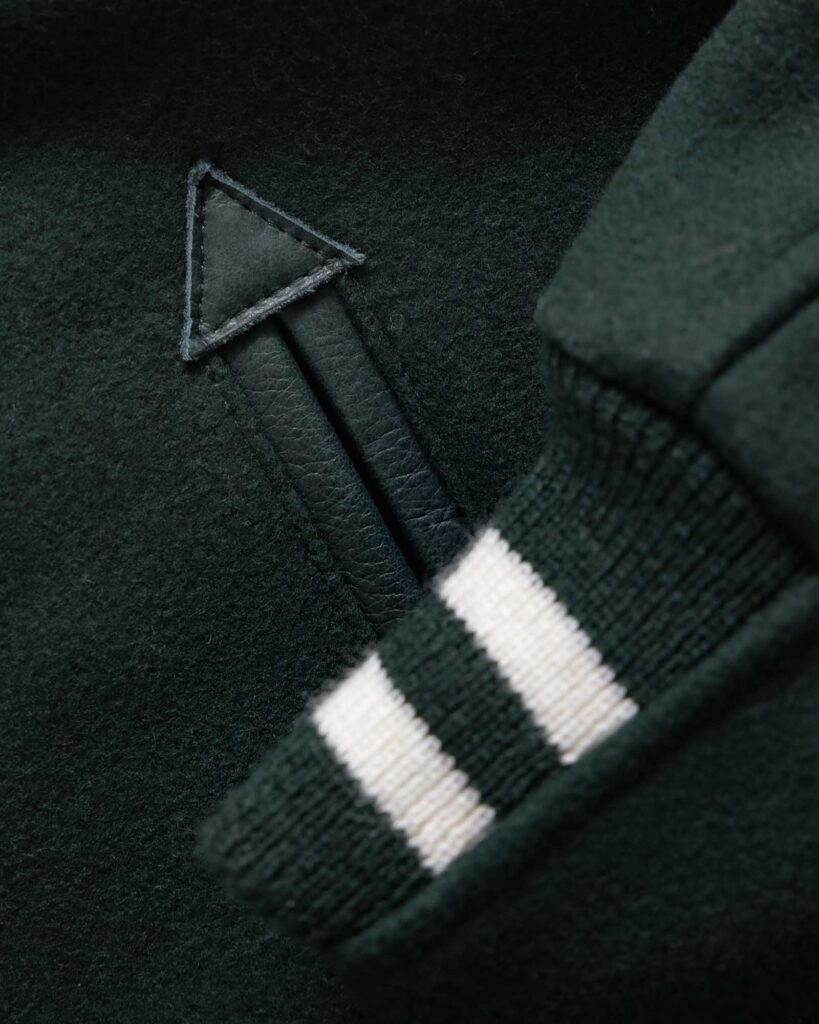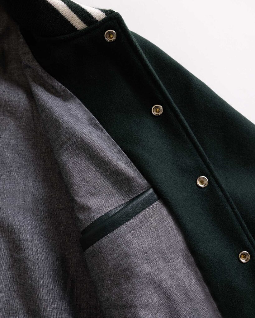 The first thing you’ll notice is the fabric. This isn’t the scratchy, stiff wool of your high school letterman jacket. The body is crafted from a luxurious, substantial blend of 80% melton wool and 20% polyamide.