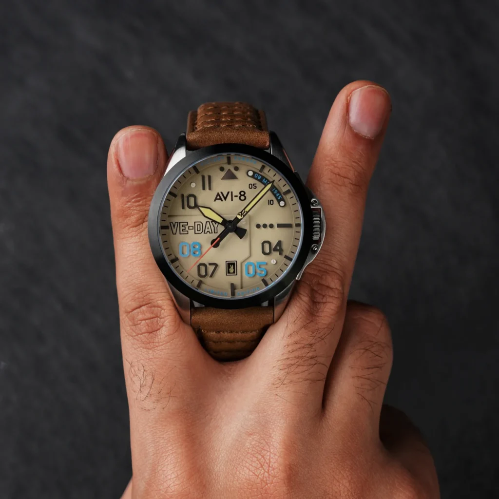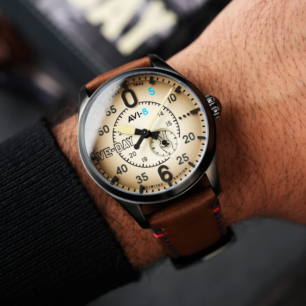 AVI-8 has built its reputation on meticulously designed timepieces that serve as wearable tributes to aviation history, capturing the spirit of iconic aircraft and the daring pilots who flew them. Now, they turn their attention to a pivotal moment that forever changed the course of history, commemorating the 80th anniversary of Victory in Europe Day – May 8, 1945. The AVI-8 VE-Day 80th Limited Edition capsule collection is a powerful collection that pays homage to the aircraft, the pilots, and the enduring symbols of triumph that marked the official end of World War II in Europe.