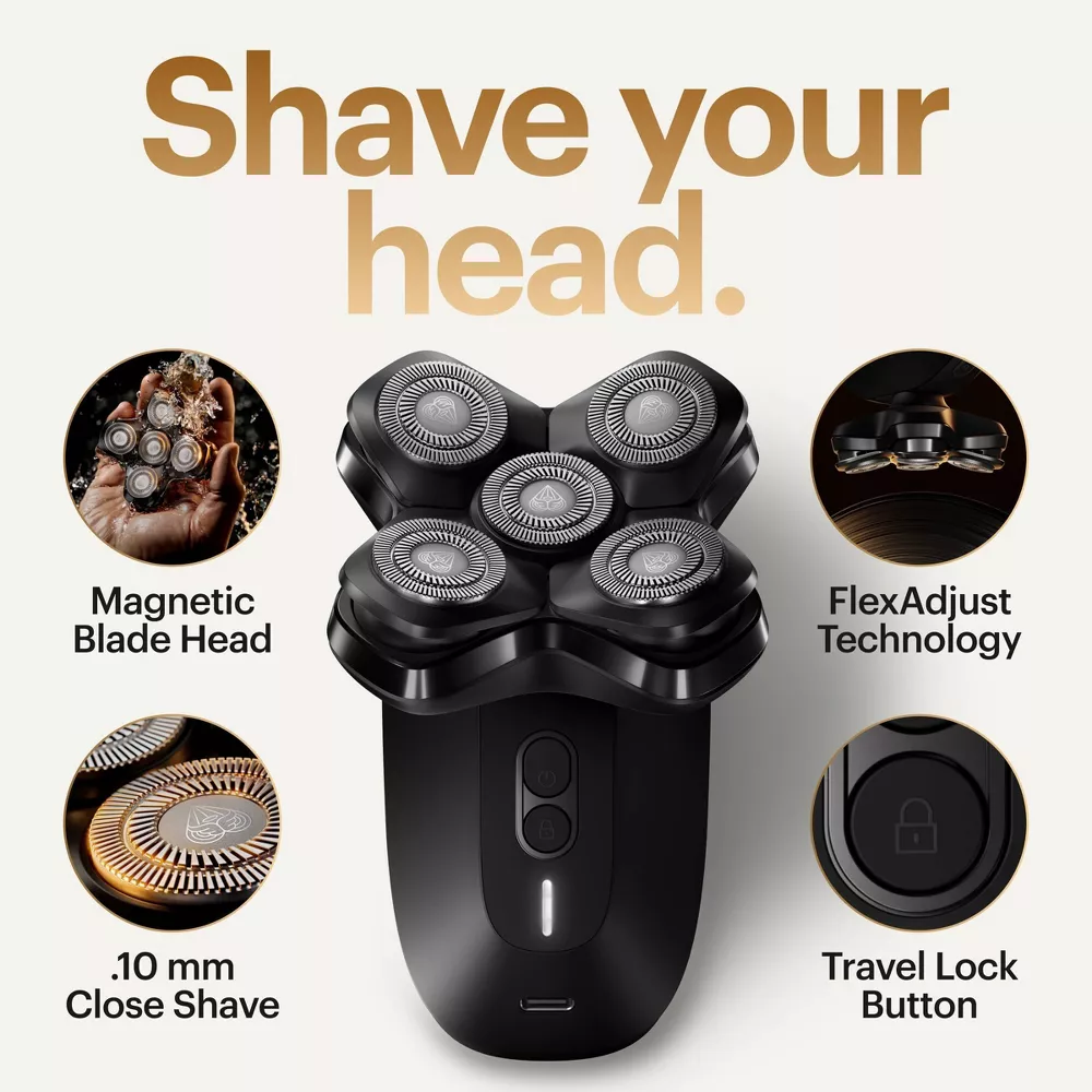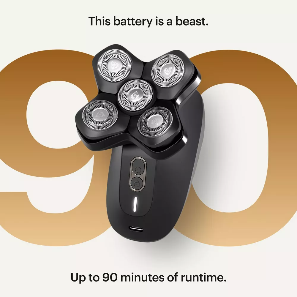 The magic continues with FlexAdjust Technology, ensuring each blade maintains intimate contact with your scalp, delivering a consistently close shave without the dreaded pulling or snagging. Powering this masterful operation is a robust 9,500 RPM motor, propelling those five double-track rotary blade heads to provide more cutting action in a single pass than you probably thought possible. This means fewer passes, less irritation, and more time admiring your glistening new dome.