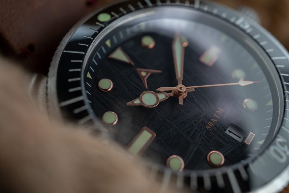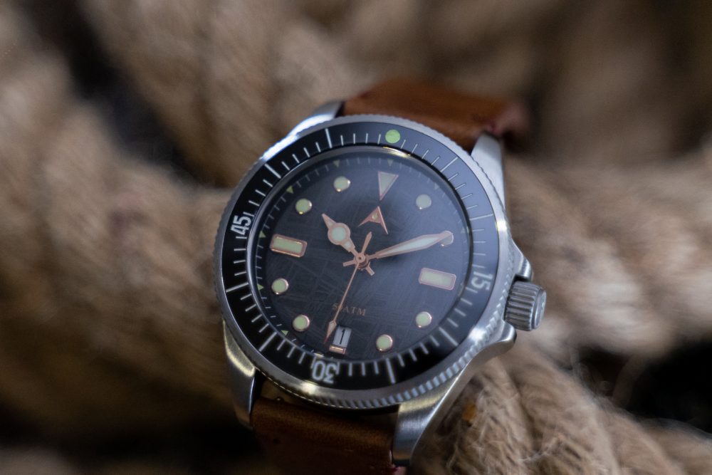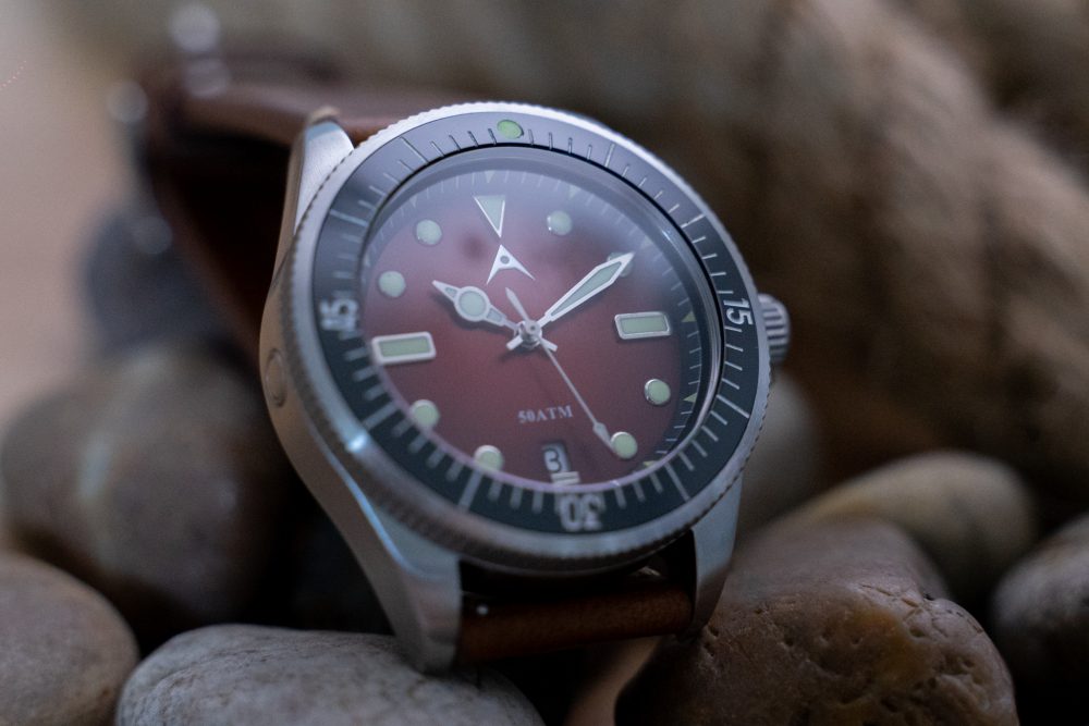 The Sea Hunt Dive Watch from Aerotec on Kickstarter (from £219) offers a highly distinctive design that is both eye-catching and useful for anyone seeking outdoor adventures. It is being offered in three different dial variations on Kickstarter and you can choose from three different dial colours – namely, blue or burgundy brushed or black Meteorite dial and each dial has its own distinct design advantages. Equipped with 3.3mm thick double domed sapphire glass, the double domed feature gives the watch a classy vintage look while still showing the dial from many angles. The crystal will have a double layer of Anti Reflective (AR) coating on the inside of the crystal to reduce reflections.