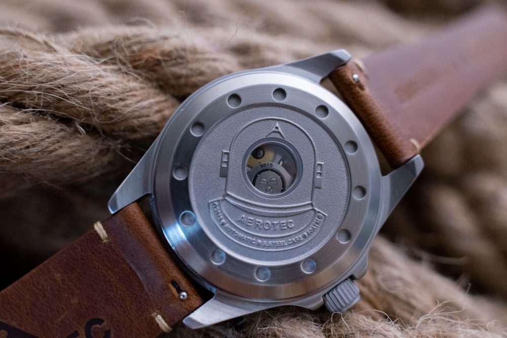 As with all watches, it is the movement that is one of the most crucial design elements and the Aerotec Sea Hunt doesn’t disappoint. It uses the well regarded Miyota 9015 movement which is just 3.90mm in height, and allows for the relatively slim case profile and also provides reliable timekeeping. It offers both hacking and hand-winding and operates at 28,800 bph for a smooth, sweeping effect. One thing to note is that it also boasts a 42-hour power reserve.