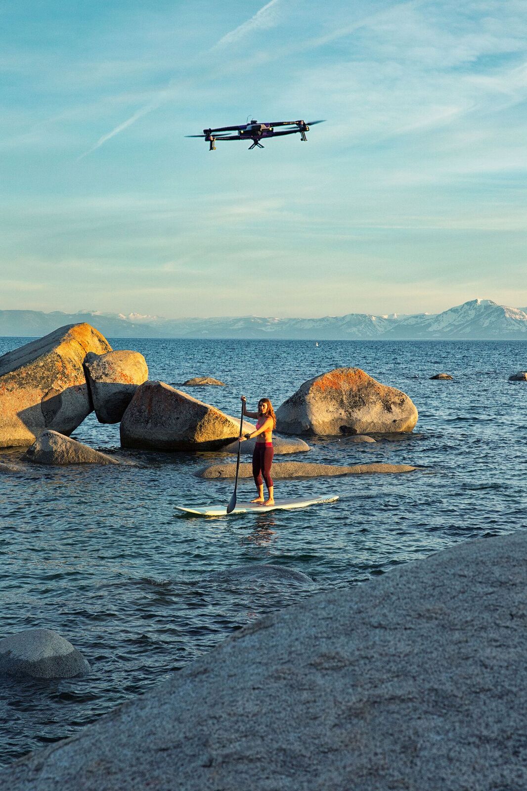 One of the most portable drones on the market, the Airdog ADII Hands-Free Drone easily folds and unfolds for ultimate portability and it has a has a built-in LiDAR (distance sensor) which makes ground collision in varying terrain a thing of the past. It uses proprietary algorithms to understand data from its barometric air pressure sensor, accelerometer and GPS which, in turn, facilitates precise and accurate reactions whenever you are faced with extreme changes in the elevation of the landscape you’re filming.