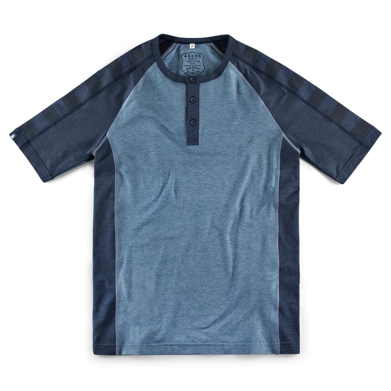 The Basic Training Tee features a stylish button placket and flatlock seams that provide additional comfort and reduce chafing. The two-tone design, complete with a subtle striped sleeve print offers a sophisticated look while maintaining high-performance standards.