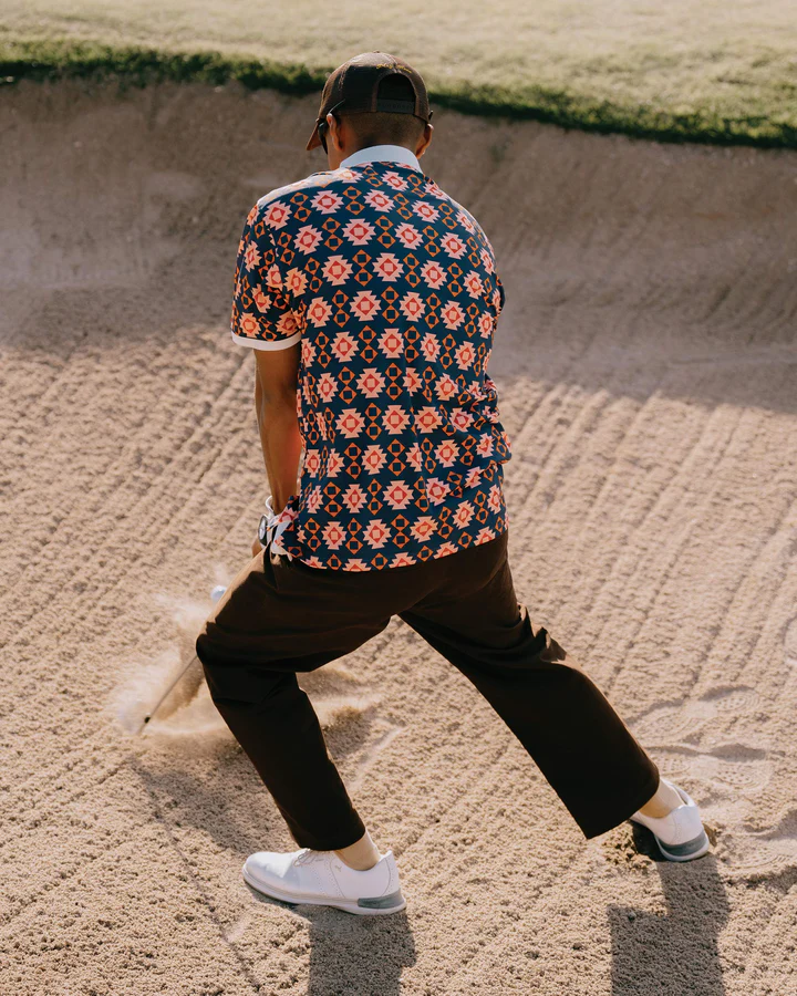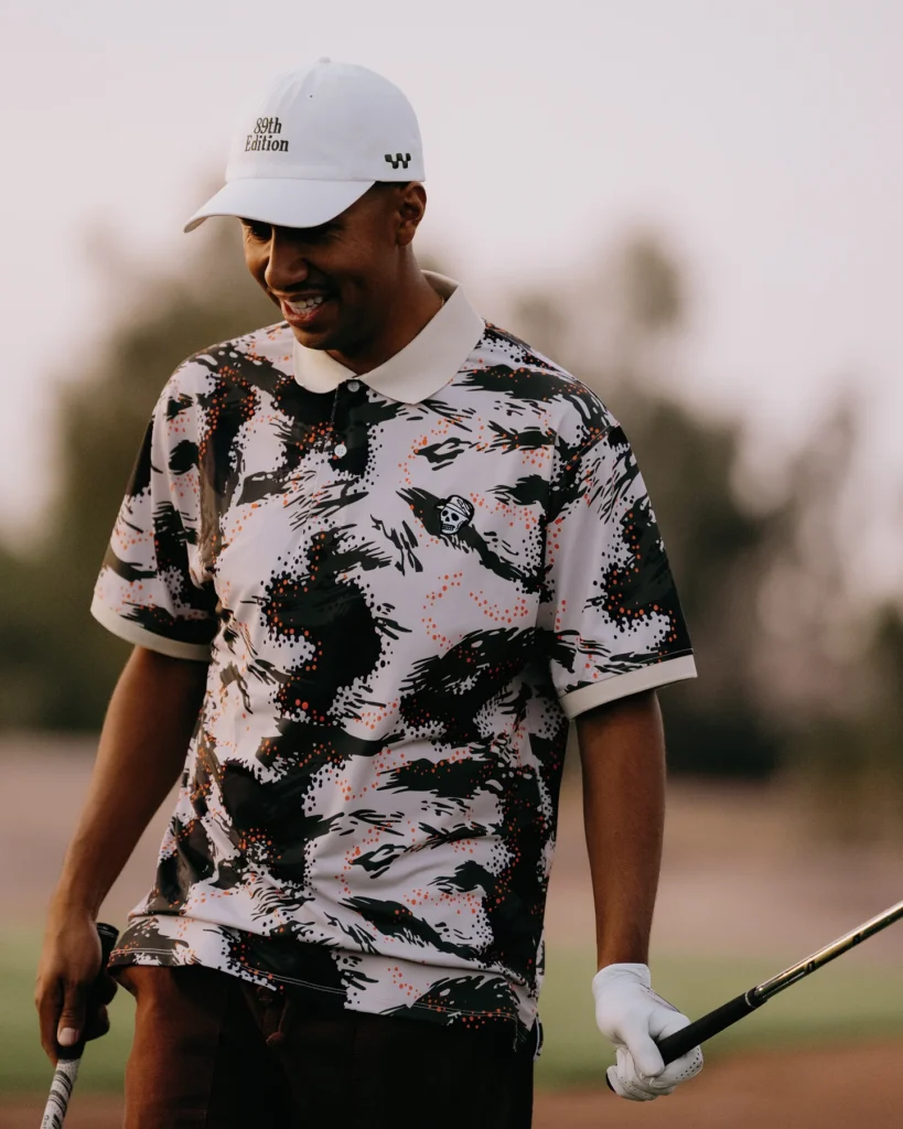The Augusta Camo Polo flips traditional camo on its head. Designed with a custom modern camouflage pattern and hit with a bold pop of safety orange, this piece was built to stand out—not disappear. It’s a fresh, elevated take on a course staple, made for those who play loud without looking like everyone else.
