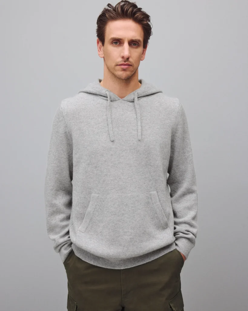 This hooded sweater is knit from the finest cashmere, prized for its natural warmth and ultrasoft hand. Cut in a standard fit with fully fashioned seams, and finished with a drawstring rib hood, cuffs, and hem.