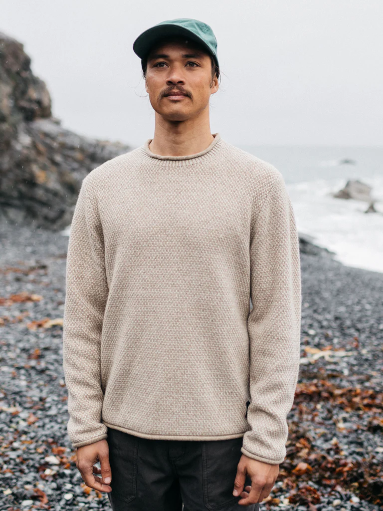 A heritage inspired knit that’s become a firm favourite among the Finisterre community. Constructed with a soft 80% wool and recycled polyamide blend to maintain shape and structure, the all-over textured fisherman’s stitch of the Barents Jumper is thick enough to keep out the cold, yet thin enough to layer easily under a jacket.