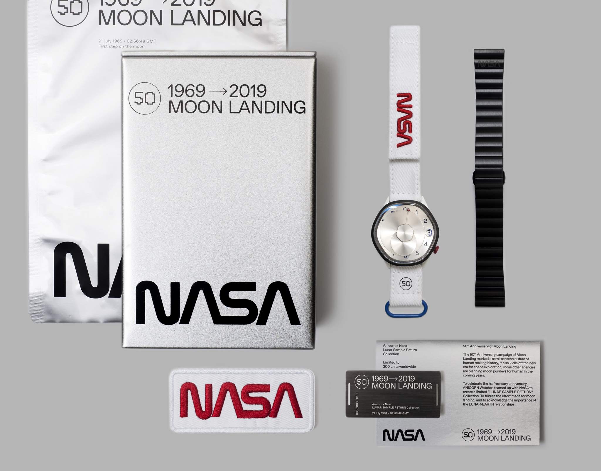 The Anicorn Lunar Sample Return Limited Edition Watch is inspired by a fairly controversial event in NASA’s history – namely, a modest looking bag carried moon traces led to legal disputes between NASA and collector. Under a series of “unfortunate events”, the moon sample bag that was used by Neil Armstrong to collect moon dust was sold to a space enthusiast Nancy Lee Carlson for just $995 in 2015, before being resold resell at a Sotheby’s auction for $1.8 million in 2017 – the 48th Anniversary of Moon Landing.