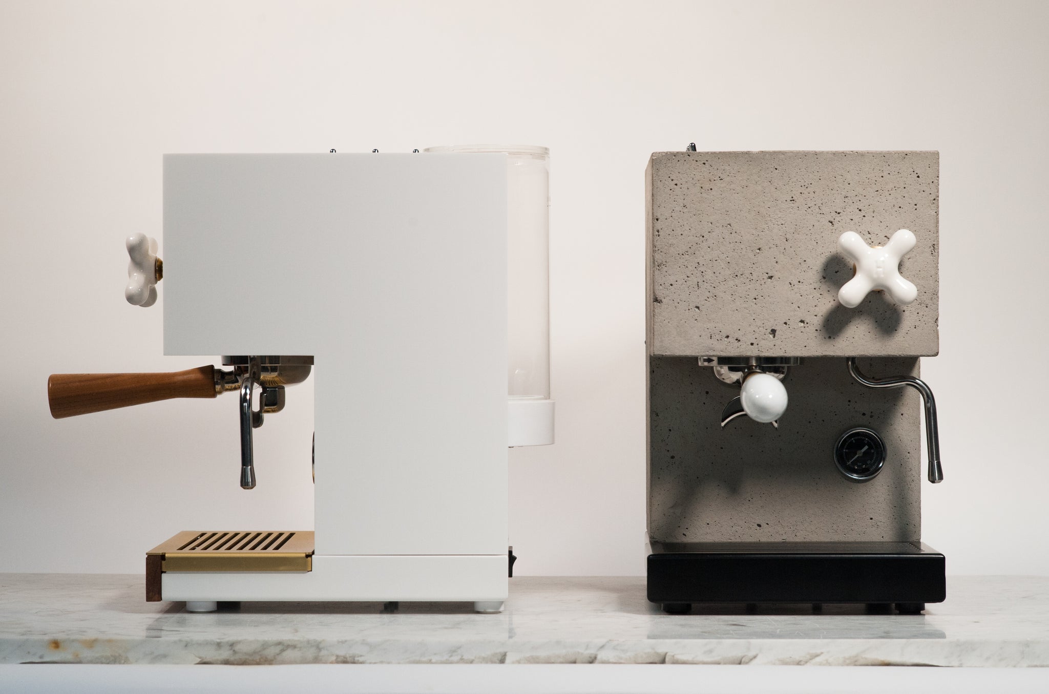 AnZa Concrete is the polar opposite of all the bent stainless steel coffee machines you see. It’s not shiny, precise, or smooth with its finish. It’s matte, rough, organic, and heavy. The precision of the ceramic steam knob and portafilter handle complement the concrete materials used. You won’t find your usual black plastic knobs here and it’s all the more incredible for it. The AnZa White Coffee Machine is no less impressive and offers a striking addition to any coffee lover’s kitchen. If we were to choose one here at The Coolector though, it would be the concrete one all day long.