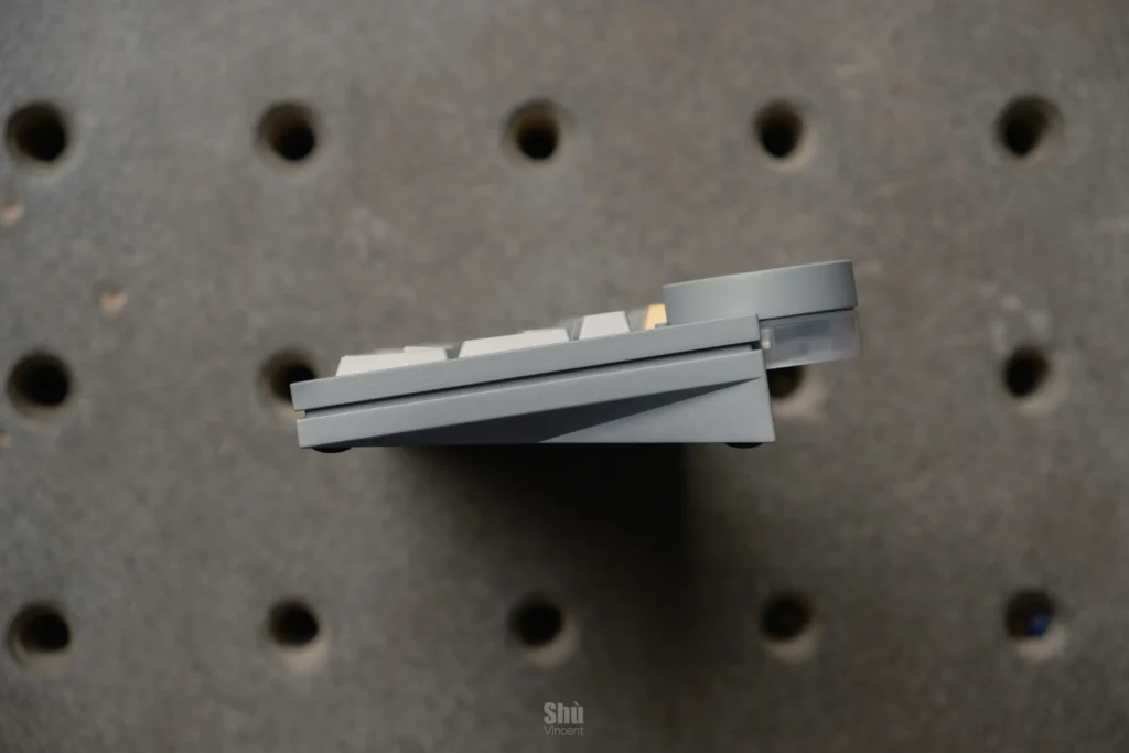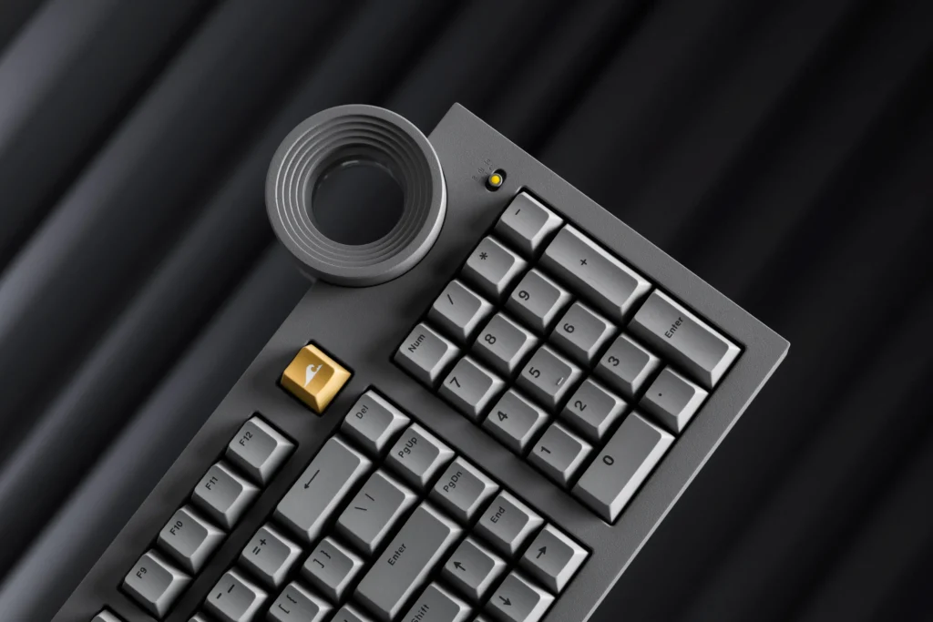 With a matte gray finish and stark lines, it feels less like a peripheral and more like a slab of concrete modernist architecture sitting on your desk, playing with light and shadow in a way that feels almost spiritual.