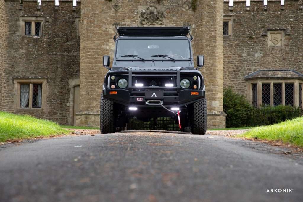 The BARBICAN D110 is fit for a king of any era. Beautifully presented in Bonetti Grey, the V8 Arkonik BARBICAN D110 Land Rover retails at $147k, but anyone considering a Arkonik custom knows that something this unique is to be kept in the family bloodline. This edition benefits from an ARB® Deluxe bull bar, WARN® Zeon 12-S winch KAHN Defend 1983 18” rims, with the celebrated Front Runner® Slimline II roof rack providing practicality for those regal weekend adventures.