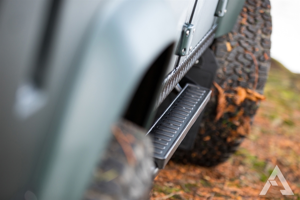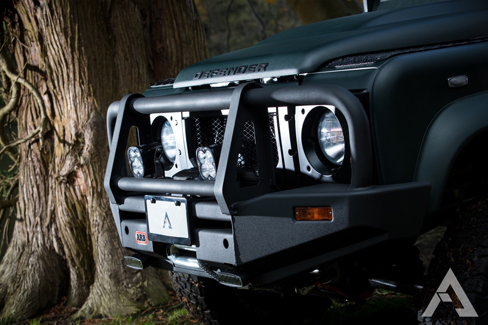 The Arkonik Columbus Edition Land Rover Defender immediately captures the eye courtesy of the raptor green Epsom green coating which positively exudes a cool, stealthy aesthetic. This is joined by a whole host of other impressive design features which includes Kahn® 1948 16″ alloy wheels, a satin black chequer plate and KBX signature grille, Fire & Ice ebony side steps, a Front Runner roof rack with ladder and kayak mounts and a WARN® Zeon 12-S winch.