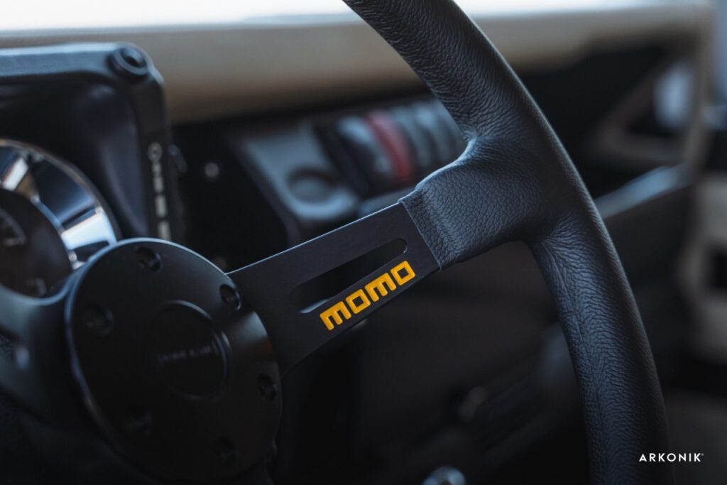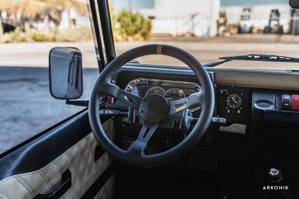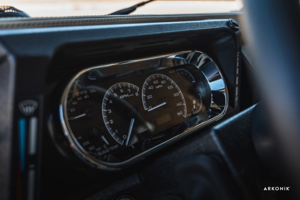 Arkonik’s full, frame-off restoration includes a new bulkhead, a brand-new wiring loom and switchgear, and replaced brake lines, front discs, and rear drums. The new steering rack and power steering, combined with an all-new suspension system, provide a driving experience that is both responsive and enjoyable. The instrument cluster has been updated with new binnacles and gauges, keeping you informed with a glance.