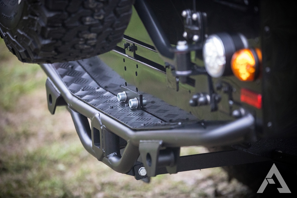 When moving to the inside of the Arkonik MONARCH Land Rover Defender 110, things are just as impressive. Here you’ll find super cool and stealthy black leather seating trim, ridiculously comfortable Modular front row seats, 2 premium high back centre row seats, bench seats in the load area, a leather stitched gear gaiter, air conditioning and an Alpine head unit with Bluetooth and Hands-free functionality. The ultimate in luxury interiors which really does justice to the overall excellence of the machine and ensures that you’ll always be riding around in considerable comfort.