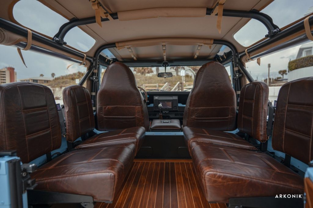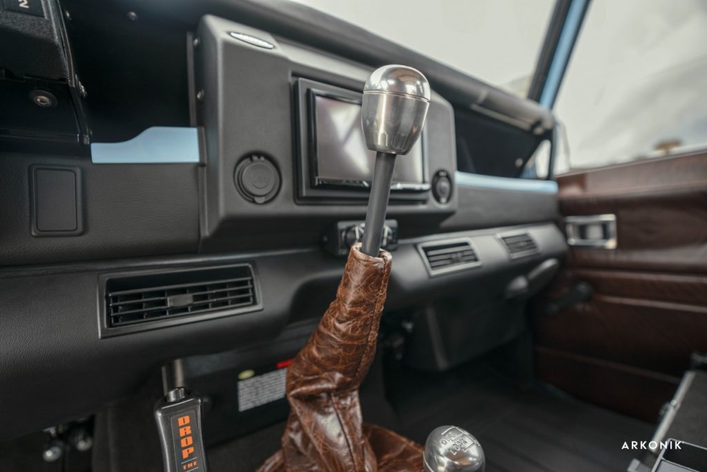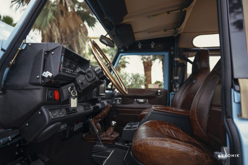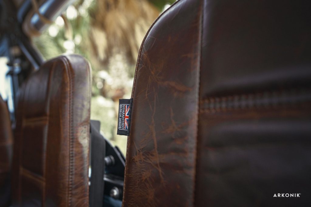 The interior of the Reef D90 from Arkonik doesn’t disappoint and , as is the case with all the workshop’s builds, it is dripping in luxurious design features which helps to set it apart from the competition. The cracked Analine leather interior and polished wooden flooring are the real focal points of Reef interior and make it a mighty comfy ride along the coast. The owners wanted to create a vehicle which made them feel as though they’d gone back in time and these key features, in conjunction with the humble analogue controls, combine to deliver something which is truly classic and unique to them.