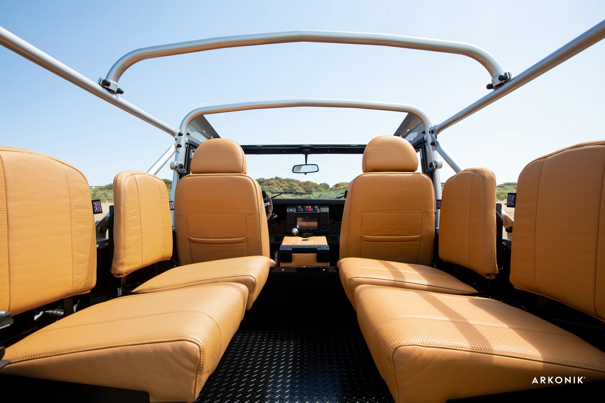 The Arkonik So-Cal Land Rover Defender has the rather eye-watering price tag of $170k but when you take into account the quality of the craftsmanship and materials used throughout the build, it becomes a lot more justified. This 6-seater will deliver comfort levels off the charts and a smooth ride ideal for road trips both big and small. The So-Cal is born ready to hit the beach, cruising along the Californian coastline with the soft-top down and the Summer tunes pumping, thanks to a cool Pioneer® sound system.