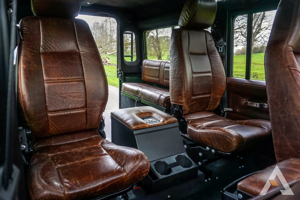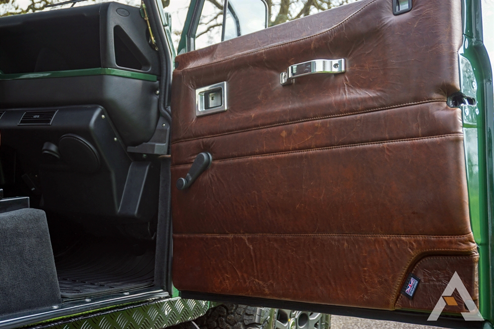 Luxury keeps on coming with the Arkonik Verve Edition Land Rover, especially so far as the interiors are concerned, and this magnificent machine has stylish and eye-catching vintage thatch by Ruskin Design leather seating trim on modular front row seats, with two premium high back centre row seats and a central Elite lock box. This is then joined by two bench seats in the load area, an Evander 15″ wooden steering wheel, stealthy black suede headlining and side panels, a top of the range sound system with Alpine Apple Car Play, luxurious leather door cards and, last but not least, a brushed aluminium alloy door furniture upgrade.